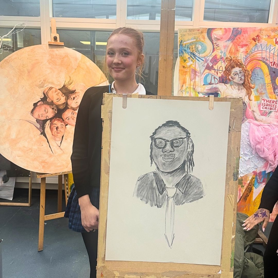 Each finalist was given only 30 minutes to create a live portrait of Mr Adango, Norcot Deputy Head of House, using only charcoal and pencil.